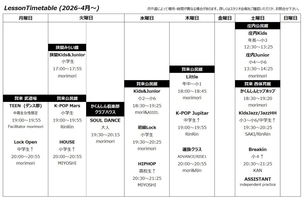 Class:K-POP , JazzHipHop , ADVANCE , 他